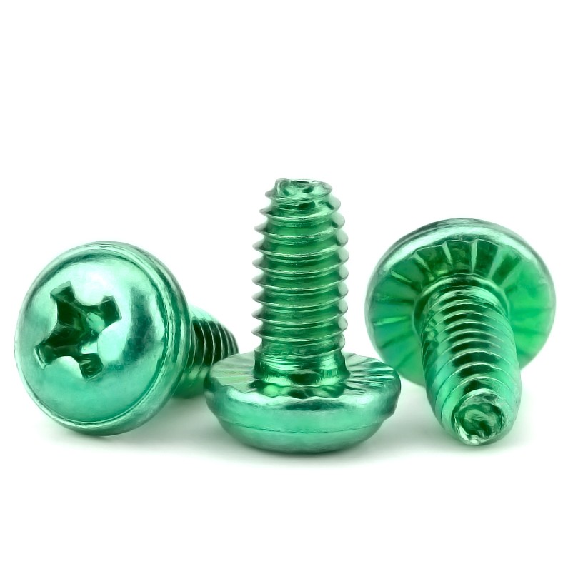 盤頭圓頭帶墊帶壓花三角牙鎖緊螺絲綠鋅
